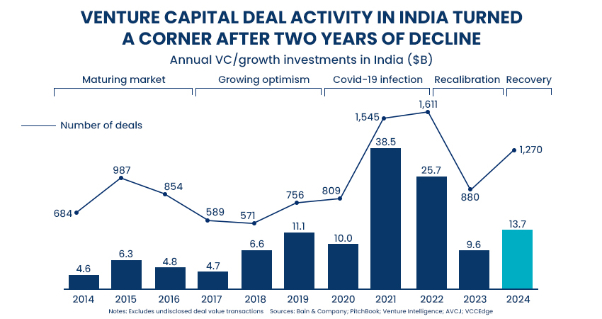 India has not experienced any capital scarcity in the last decade. Venture capital funding has grown significantly, with VC inflows reaching $13.7 billion in 2024, reinforcing India’s position as one of the most active startup ecosystems globally. As per the IBEF VC funding report, funding activity rebounded by 45%+, despite global economic slowdowns, signalling continued investor confidence.